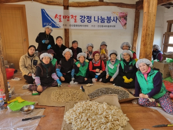 구미시 선산읍이 5일 선산읍새마을부녀회(회장 박윤옥) 주관으로 설 명절맞이 강정나눔 봉사를 진행했다.