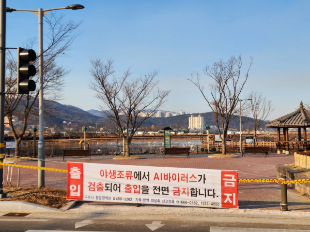 구미 지산샛강의 야생조류에서 조류 독감(AI)이 검출돼 출입을 전면 금지하고 있다.
