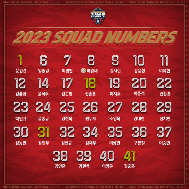 김천상무프로축구단이 지난 25일 ‘2023 시즌 선수단’ 배번을 발표했다.