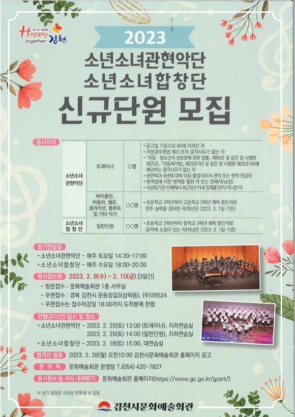 김천시문화예술회관이 시립예술단 신규단원을 모집한다.