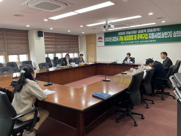 김천시가 지난 24일 ‘2023년도 상반기 귀농 농업창업 및 주택구입 지원사업’ 대상자 선정 심의회를 열었다.