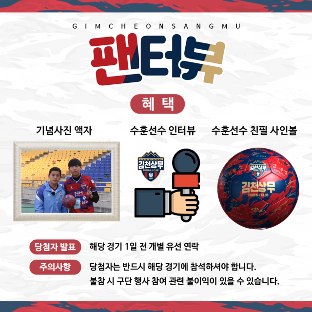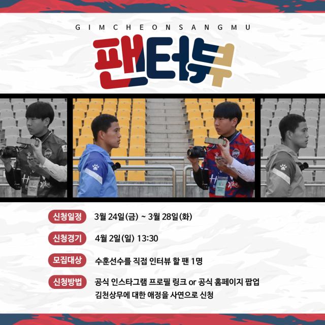 김천상무프로축구단이 프로선수단을 직접 인터뷰할 팬을 24일부터 28일까지 모집한다.