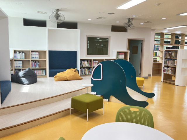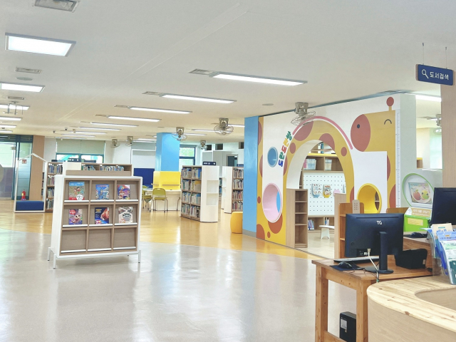이번에 어린이자료실, 컴퓨터실 등 실별 분리된 벽을 허물고 복도가 없는 개방적이고 통합적인 공간으로 재구성해 실사용 공간을 확보하고 어린이 중심의 집기를 전면 교체했으며 어린이의 동심을 심어 주는 도서관으로 환경이 개선됐다.