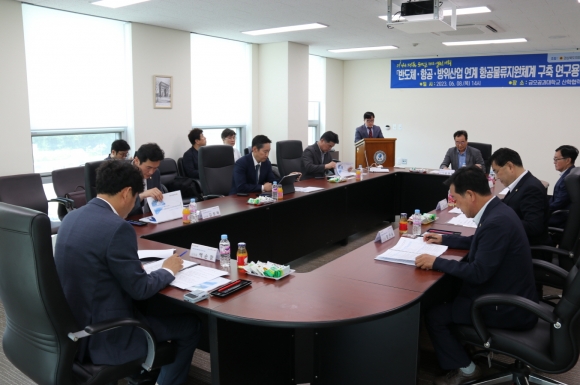 경북도의회 통합신공항 배후경제권 연구회(대표 백순창 의원)가 8일 금오공과대학교 산학협력관에서 '반도체·항공·방위산업 연계 항공물류지원체계 구축 연구용역' 중간보고회를 가졌다.
