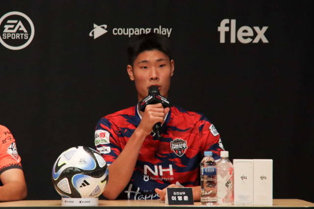 한국프로축구연맹이 21일 오전, 서울 종로구에 위치한 아산정책연구원에서 ‘U-20 월드컵 활약 K리거 미디어데이’를 개최했다. 김천상무프로축구단은 최후방 김준홍(GK), 최전방 이영준(FW)이 미디어데이에 참석해 U20 월드컵 소회와 K리그에 대한 포부를 밝혔다.