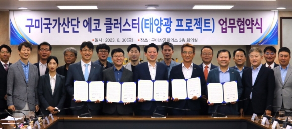 30일 3단체는 구미상공회의소 3층 회의실에서 협약식을 갖고 본격적인 사업에 착수했다. 사업이 완료되는 7년 안에 구미산단을 글로벌 넘버원 탄소중립 산업단지(에코 클러스터)로 변모시킨다는 목표다.