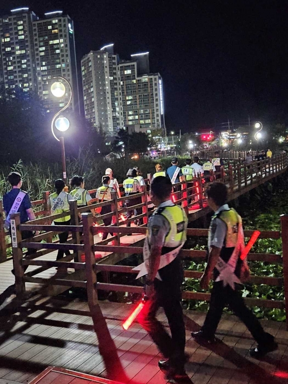 지난 6일 자율방범대원 30여명과 지역주민이 함께 들성지 생태공원 둘레길 범죄예방 합동순찰을 실시했다.