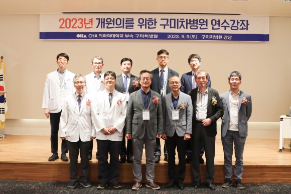 차의과학대학교 부속 구미차병원(병원장 김재화)이 지난 9일 ‘2023년 개원의를 위한 구미차병원 연수강좌’를 100여 명의 개원의가 참여한 가운데 성황리에 마쳤다.