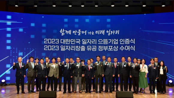 대한민국 일자리 으뜸기업은 고용노동부가 양질의 일자리 창출 및 질 개선에 앞장서 성과를 거둔 민간기업을 격려하기 위한 제도로 2018년 이래 매년 100개 기업을 선정해 지원하고 있다. 선정된 기업은 대통령 명의의 인증패가 수여되고 금융지원 우대, 정기 세무조사 유예, 신용평가 우대 등 200여개의 다양한 행정∙재정적 지원을 받을 수 있다.