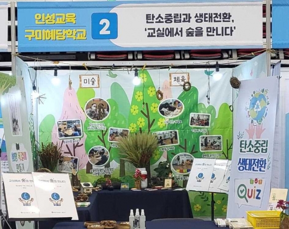 구미혜당학교는 '탄소중립 생태전환, 교실에서 숲을 만나다'를 제목으로 혜당학교 교원연구동아리(대표 김미순)와 한국생태문화협동조합(이사장 이은숙)의 협업으로 다양한 자연물을 이용한 미술, 체육, 음악, 과학 등 교과연계 프로그램을 시행했다. 이를 통해 현장체험학습과 야외활동의 기회가 적은 장애학생들에게 새로운 경험을 선사해왔다.