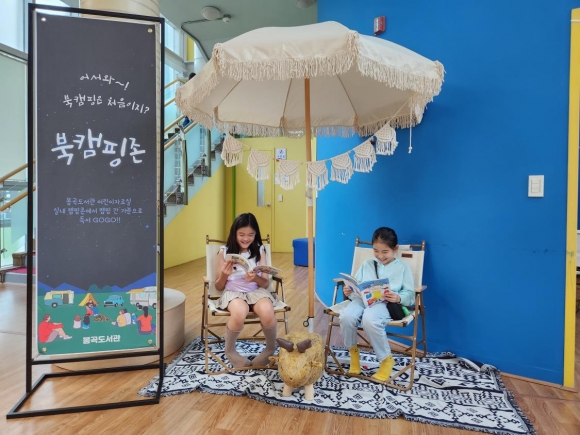 캠핑문화를 즐기는 사람들이 늘어난 요즘, 구미시립 봉곡도서관이 어린이 자료실 한켠에 ‘북캠핑존’을 설치해서 시민들로부터 호응을 얻고 있다.