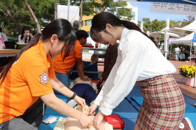 | ↑↑ 심폐소생술 체험(구미대 제공) |