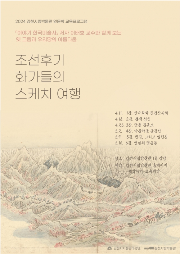 김천시설관리공단(이사장 김재광)이 오는 4월 11일부터 5월 16일까지 김천시립박물관에서 인문학 교육프로그램 '조선후기 화가들의 스케치여행'을 개설한다.