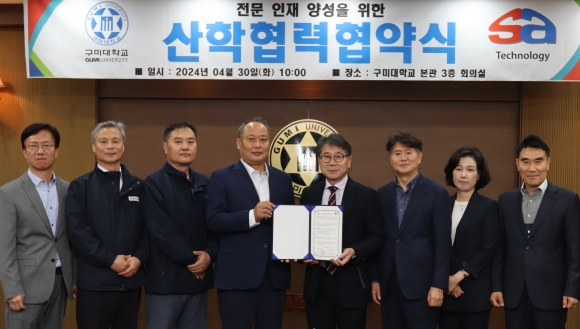 구미대(총장 이승환)와 ㈜에스에이테크(대표이사 고만복)가 30일 구미대 본관 대회의실에서 우수 인재 양성을 위해 손을 맞잡았다.