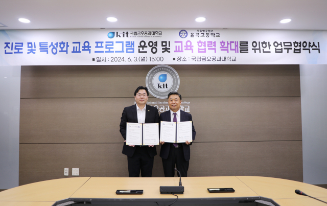 국립금오공대 입학처(처장 김우석)가 3일 대학 본관 중회의실에서 김천 율곡고(교장 김형욱)와 진로 및 특성화 교육지원 체제 구축을 위한 업무협약을 체결했다.