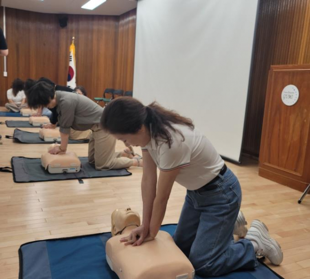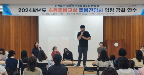 구미교육지원청은 돌봄교실에 참여하는 학생들의 안전을 위해 매년 역량 강화 연수를 통해 심폐소생술과 다양한 상황에서의 응급처치 안전교육을 실시하고 있다.