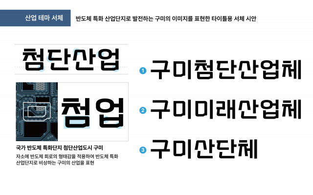 구미시가 시의 상징성과 미래 가치를 효과적으로 전달하기 위해 개발한 전용서체 3종에 대한 선호도 조사를 실시한다.