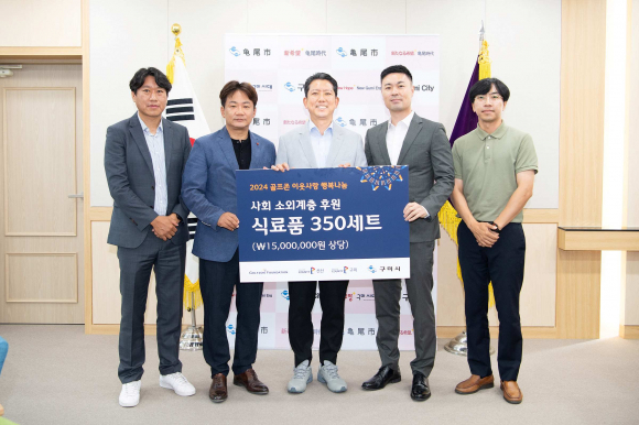 골프존카운티 선산(대표이사 서상현)이 20일 지역 취약계층을 위해 생필품 350세트(1,500만원 상당)를 구미시에 전달했다.