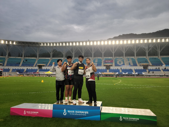 | ↑↑ 투포환 박시훈(금오고) 선수(왼쪽에서 세번째) |