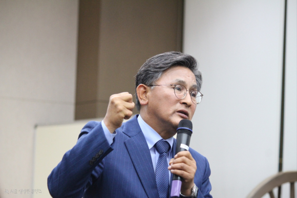 | ↑↑ 박성만 경북도의회 의장이 특강을 진행하고 있다. (김선미 기자) |