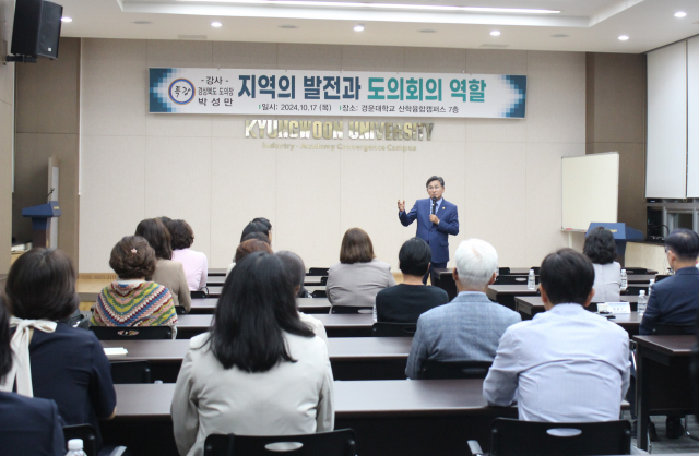 경운대 최고위관리자 과정이 주관한 이번 특강은 경상북도와 대구시의 통합, 지역 발전에 대해 도의회의 역할과 방향성에 대한 설명과 토론으로 진행됐다.