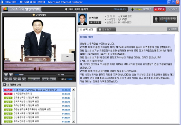 지난 7월 영상회의록 시스템 구축사업을 시작한 구미시의회가 지난 8월말 사업을 완료하고 9월부터 경상북도 도내 최초로 시의회 홈페이지 영상회의록 서비스를 본격적으로 실시하고 있다.