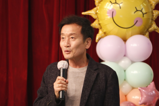 | ↑↑ 남성관 구미교육지원청 교육장이 예술제에 참가한 어린이들에게 응원과 격려의 인사를 전하고 있다. |