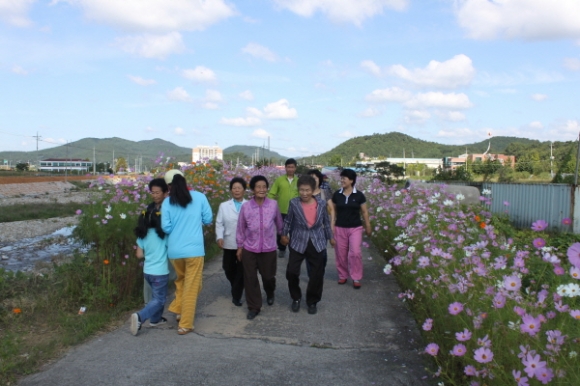 오상고 풍물단의 풍물놀이로 눈길을 사로잡은 행사는 기념식에 이어 장천면을 뒤덮은 코스모스길을 걷는 걷기대회와 줄당기기, 제기차기 등 문화.체육행사와 노래자랑으로 진행됐다.
