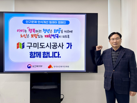 구미도시공사(사장 이재웅)가 저출생 및 지방소멸 극복을 위한 ‘인구문제 인식 개선 릴레이 캠페인’에 참여했다고 15일 밝혔다.
