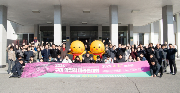 구미시가 3일 시청 앞에서 오는 3월 2일 열리는 ‘2025 구미 박정희 마라톤대회’의 성공을 기원하는 퍼포먼스를 펼쳤다.