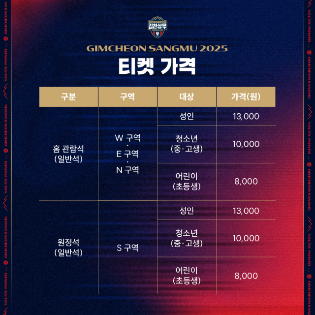 김천상무가 2025시즌 입장권 정책을 발표했다.