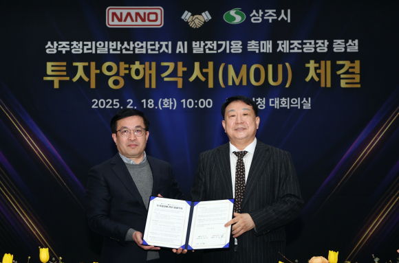 상주시는 ㈜나노와 인공지능 데이터센터 비상발전기용 디젤촉매 제조공장 증설을 위한 투자양해각서를 상주시청 대회의실에서 18일 체결했다.