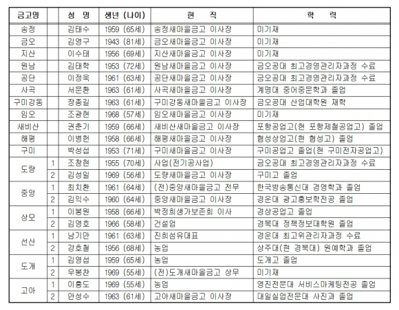 ↑↑ 구미지역 새마을금고 이사장 선거 후보등록자 명단