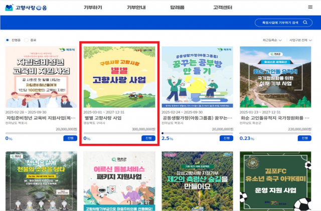 구미시가 3월 1일부터 ‘고향사랑e음’을 통해 지정기부인 ‘별별 고향사랑 사업’ 모금을 시작했다.