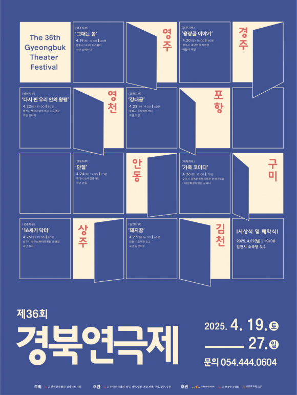 (사)한국연극협회 경상북도지회에서는 4월 19일부터 27일까지 제36회 경북연극제를 개최한다고 14일 밝혔다.