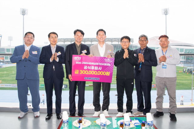 삼성전자(주)가 아시아육상경기선수권대회 국가대표 최종선발전이 한창인 지난 22일, 구미시민운동장에서 대회의 성공적인 개최를 지원하기 위해 3억 원을 후원했다.
