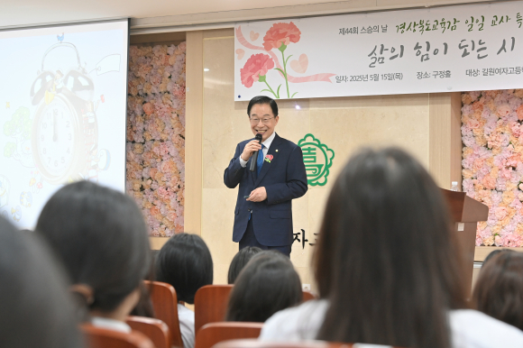 임종식 경북교육감이 15일 스승의날을 맞아 길원여자고등학교에서 ‘일일 교사’로 나서 특별한 수업을 진행했다.