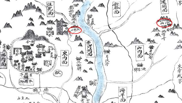 고지도인 「여지도서」와 「동여도」 역시 태조산과 냉산을 낙동강 서쪽과 동쪽에 각각 다른 산으로 표기하고 있다. 도리사 아도화상 사적비에도 “선산부 냉산 도리사”라고 명시돼 있으며, 선산 출신 인물 송당 박영이 “낙수(낙동강) 태조산 기슭에 집을 짓고 송당이라 편액했다”는 「일선지」 기록도 이를 뒷받침한다.
