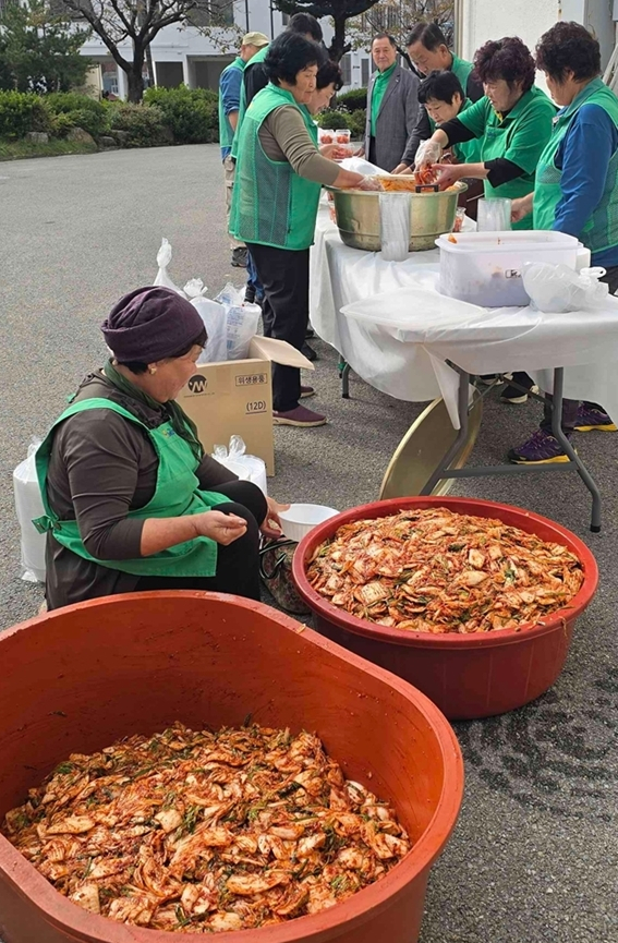 영농철 바쁜 시기에도 새마을회 회원들은 김치를 담는 등 음식을 정성껏 만들어 일일이 가정을 방문했다.