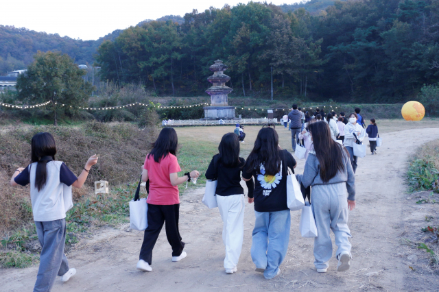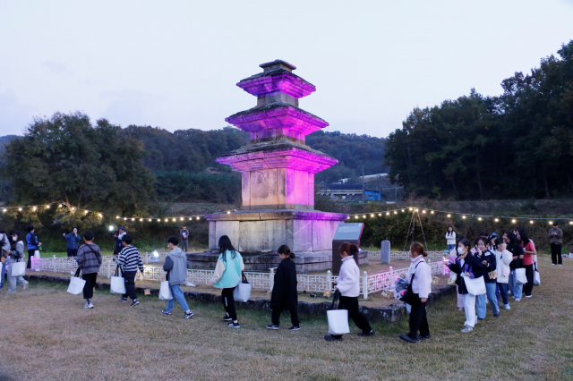 또 낙산리 삼층석탑 일대에서 발견된 기와 조각과 토기 조각을 통해 과거 절터였음을 추정해보는 등 흥미로운 시간을 가졌다. 직접 만든 무드등을 들고 삼층석탑을 돌며 석탑을 관찰하고 소원을 빌기도 했다. 폐사지인 들녘 가운데 덩그러니 서 있는 삼층석탑에 불이 밝혀지면서 석탑의 진가를 눈으로 확인할 수 있었다.