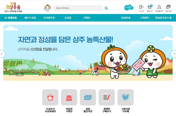 | ↑↑ 상주시 농특산물 온라인 공식쇼핑몰 ‘명실상주몰’의 홈페이지 캡처 화면 |