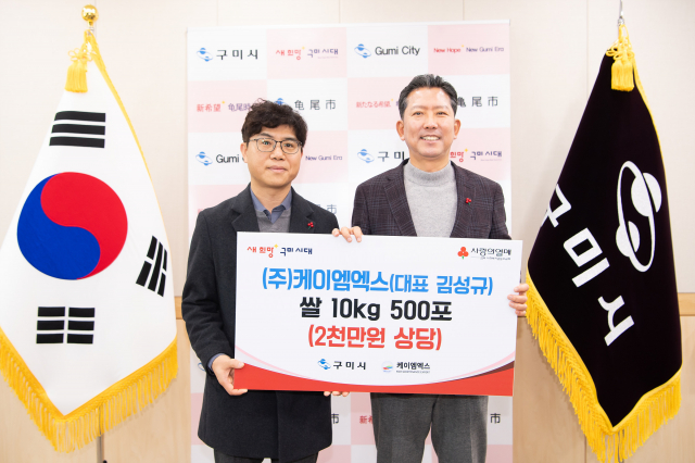 ㈜케이엠엑스(대표 김성규)가 15일 쌀 10kg 500포(2천만 원 상당)를 구미시에 전달했다.