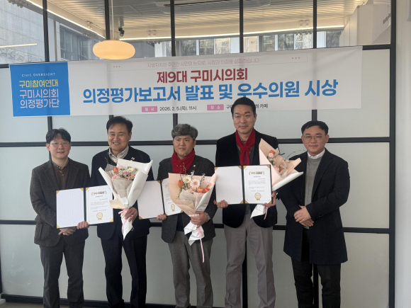 구미참여연대 구미시의회의정평가단이 3일 제9대 구미시의회(2022년 7월~2025년 12월) 의정활동을 종합 평가한 결과를 발표하고, 우수의원 4명과 ‘권위남용 의정상’ 1명을 선정·공개했다.