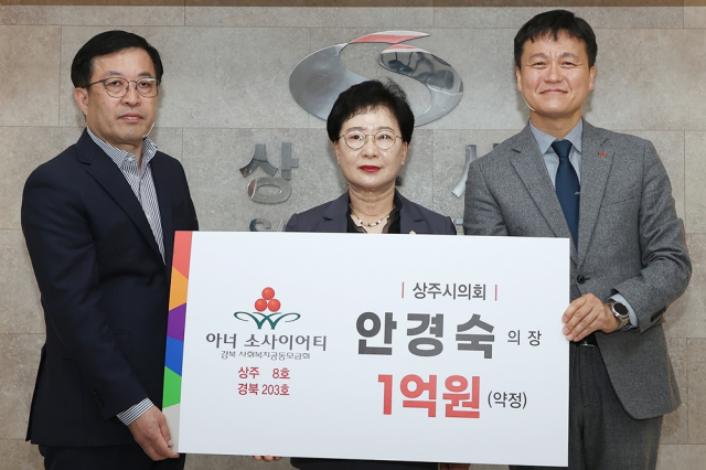 제7~9대 상주시의회 3선 의원인 안 의장은 “그동안 상주시민들께서 보내주신 성원에 보답하고자 사랑의 열매 아너 소사이어티에 동참하게 됐다.”며 “앞으로도 지속적인 나눔 실천으로 지역사회에 온기를 더하겠다.”라고 밝혔다.
