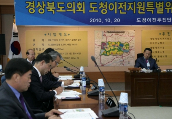 경상북도의회 도청이전지원특별위원회(위원장 박진현)는 20일 안동시 풍천면 소재 도청이전신도시건설사업단 회의실에서 제2차 도청이전지원특별위원회 회의를 개최하고, 집행부(도청이전추진단장 안종록)로부터 업무보고를 받고 오후에는 도청이전 신도시 예정지 현지 확인 등을 실시했다.