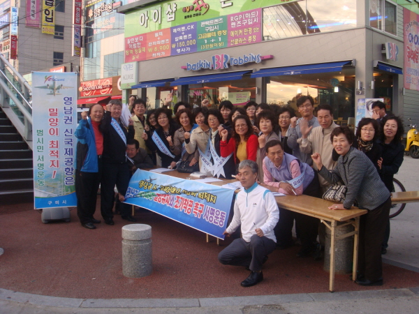 인동동 통장협의회는 인근 직장인 및 주민들에게 영남권 신국제공항의 밀양 유치의 당위성을 설명하고 적극적인 홍보활동을 통해 시민들의 자발적인 서명동참을 유도했다.