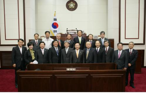 일본 오쯔시의회 사토우 켄지 부의장 일행 8명이 2일 양 도시간 자매결연 20주년을 기념하고 양 시의회 우호협력 및 교류발전 등 사항을 논의하기 위해 구미시의회를 방문했다.