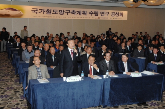 지난 5일 한국교통연구원은 서울 교육문화회관에서 2011- 2020내 철도건설에 대한 목표와 방향 및 투자 계획안을 발표하기 위한 도망구축계획 연구> 공청회가 열렸다. 이날 공청회에는 박보생 김천시장, 이철우 국회의원을 비롯한 시 관계공무원들이 김천~진주간과 김천~전주간 철도노선의 국가정책 반영 여부를 확인하기 위해 참석했다. 또 오연택 김천시의장, 윤용희 김천상공회의소 회장, 김중기 공공기관 유치 추진위원장, 함병문 자연보호협의회장을 비롯한 민간사회단체장, 리통장협의회 대표 등 200여명이 참석, 철도건설을 염원하는 시의 의지를 유감없이 표출했다.