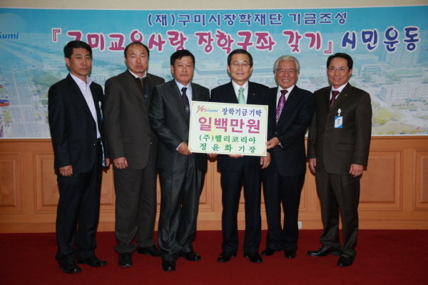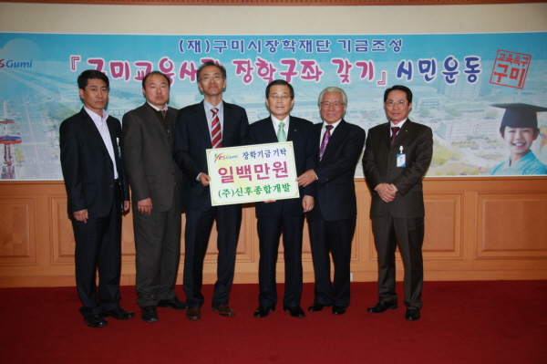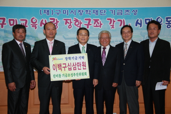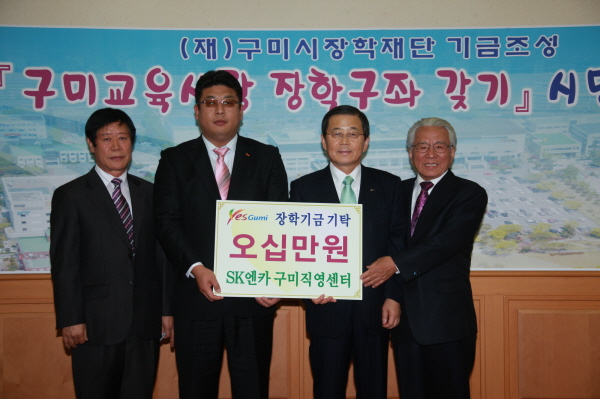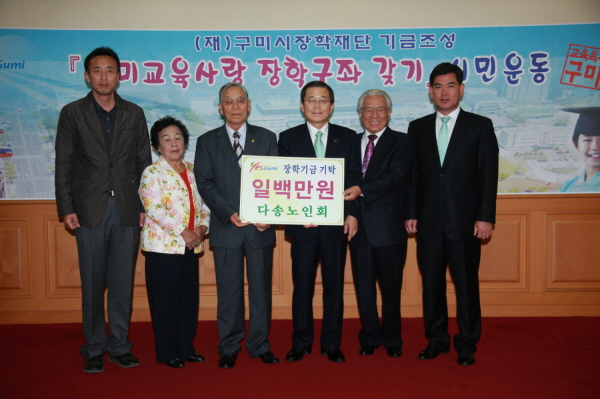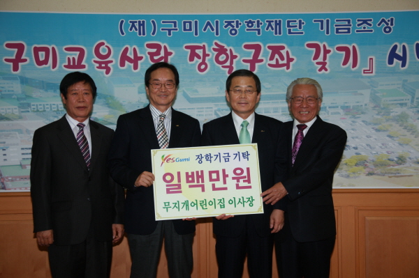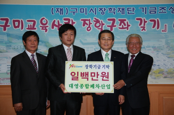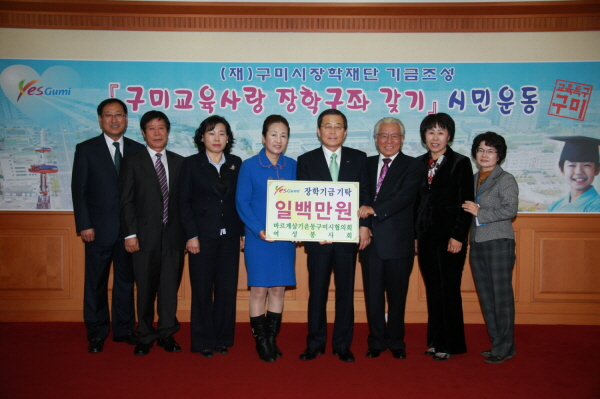 구미시 10개 단체가 (재)구미시장학재단에 8일 장학기금 총 1천4백93만원을 기탁했다.