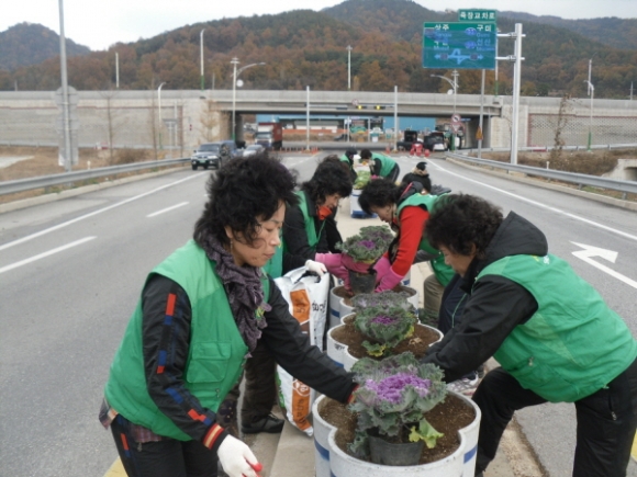 구미시 선산읍새마을부녀회(회장 송영미)는 겨울철 아름다운 선산을 가꾸기 위해 지난 8일 부녀회원 20여명은 선산IC입구와 1호광장을 중심으로 300여본의 꽃양배추를 식재했다.